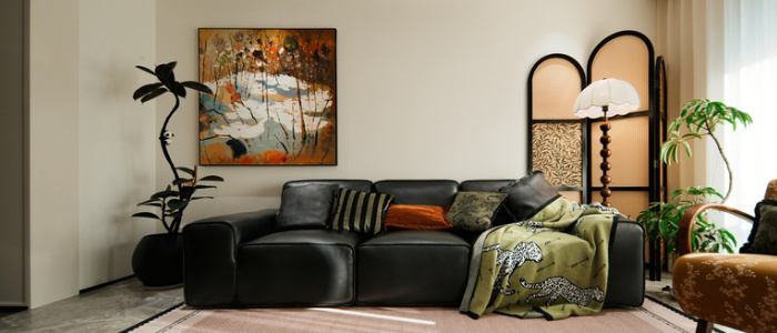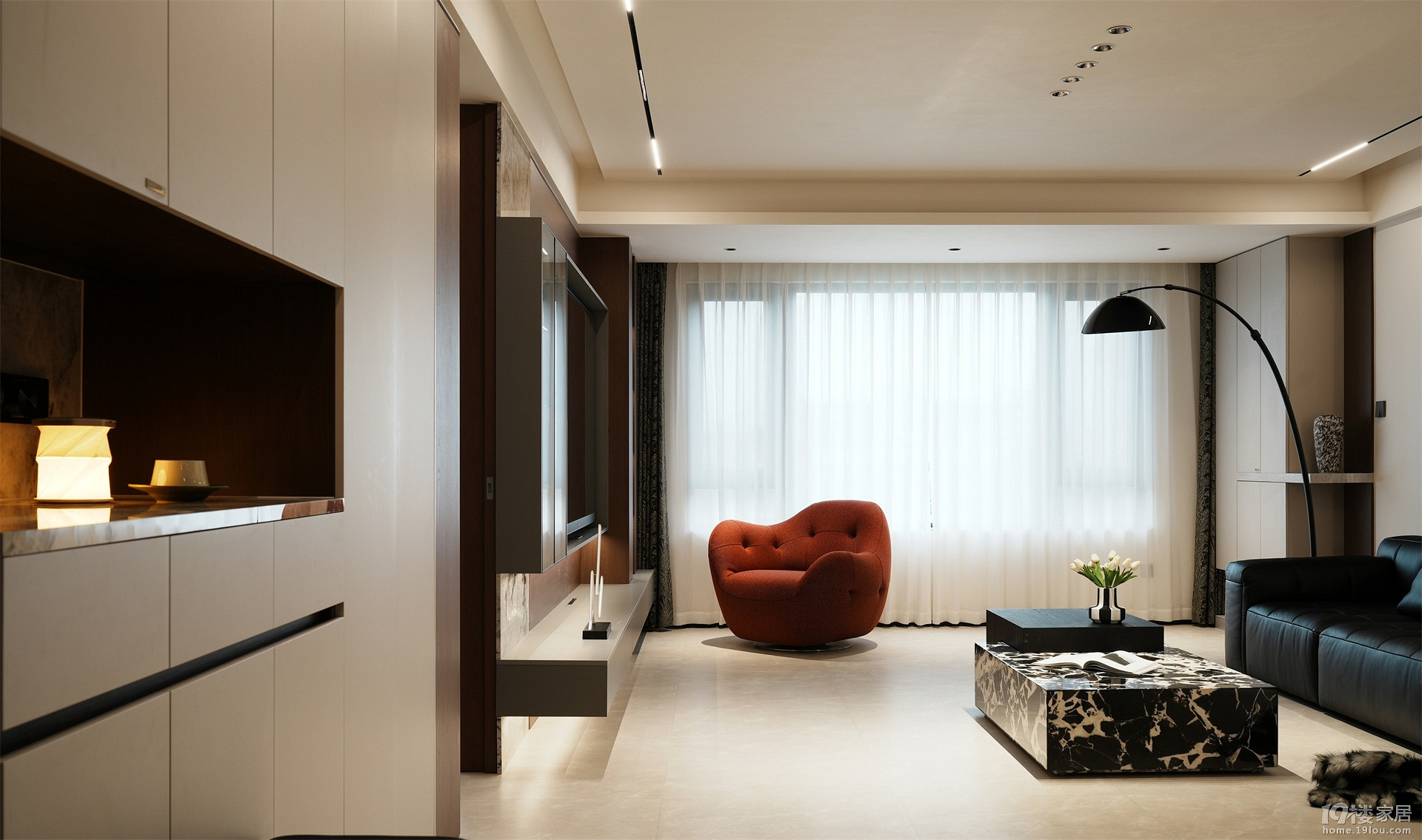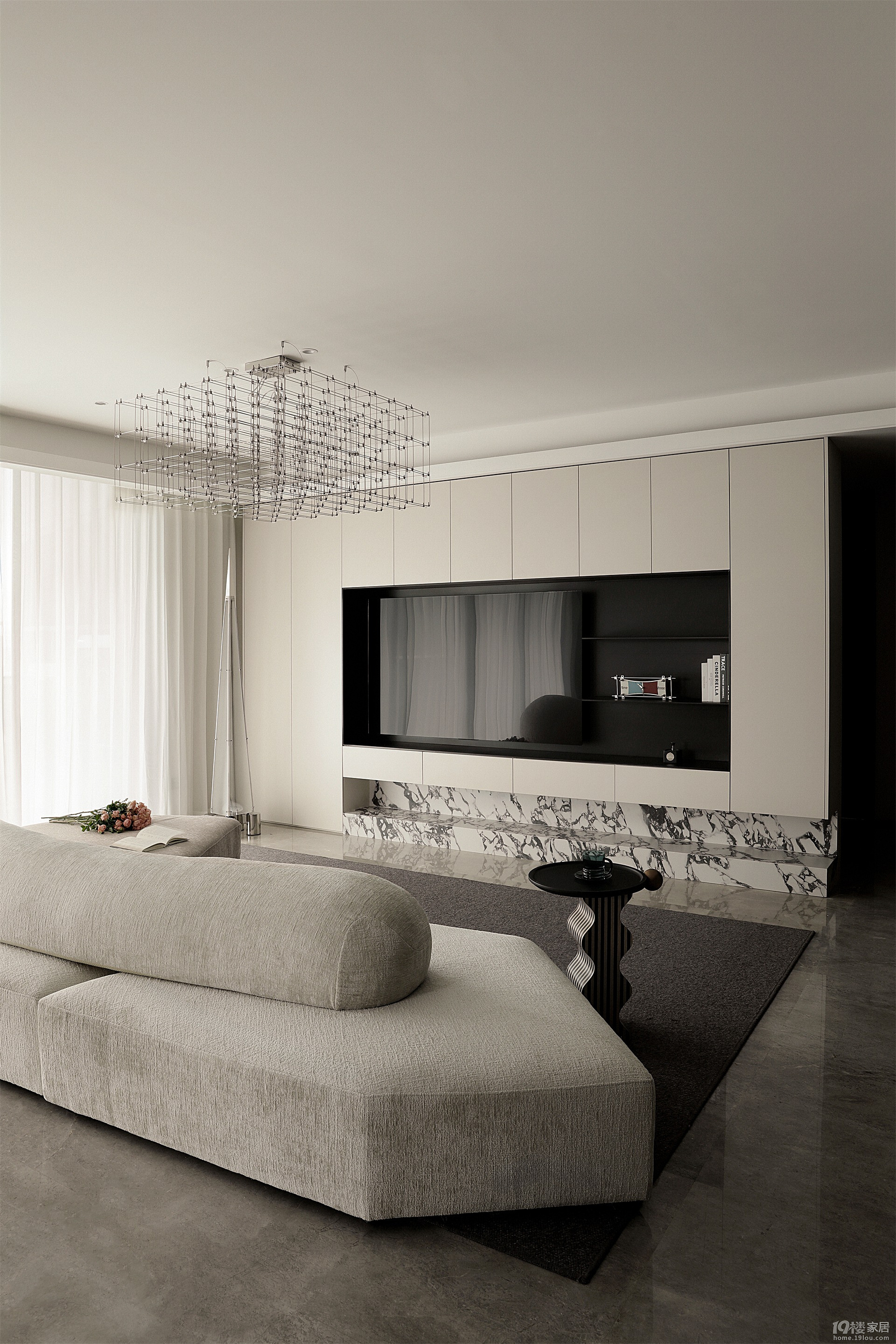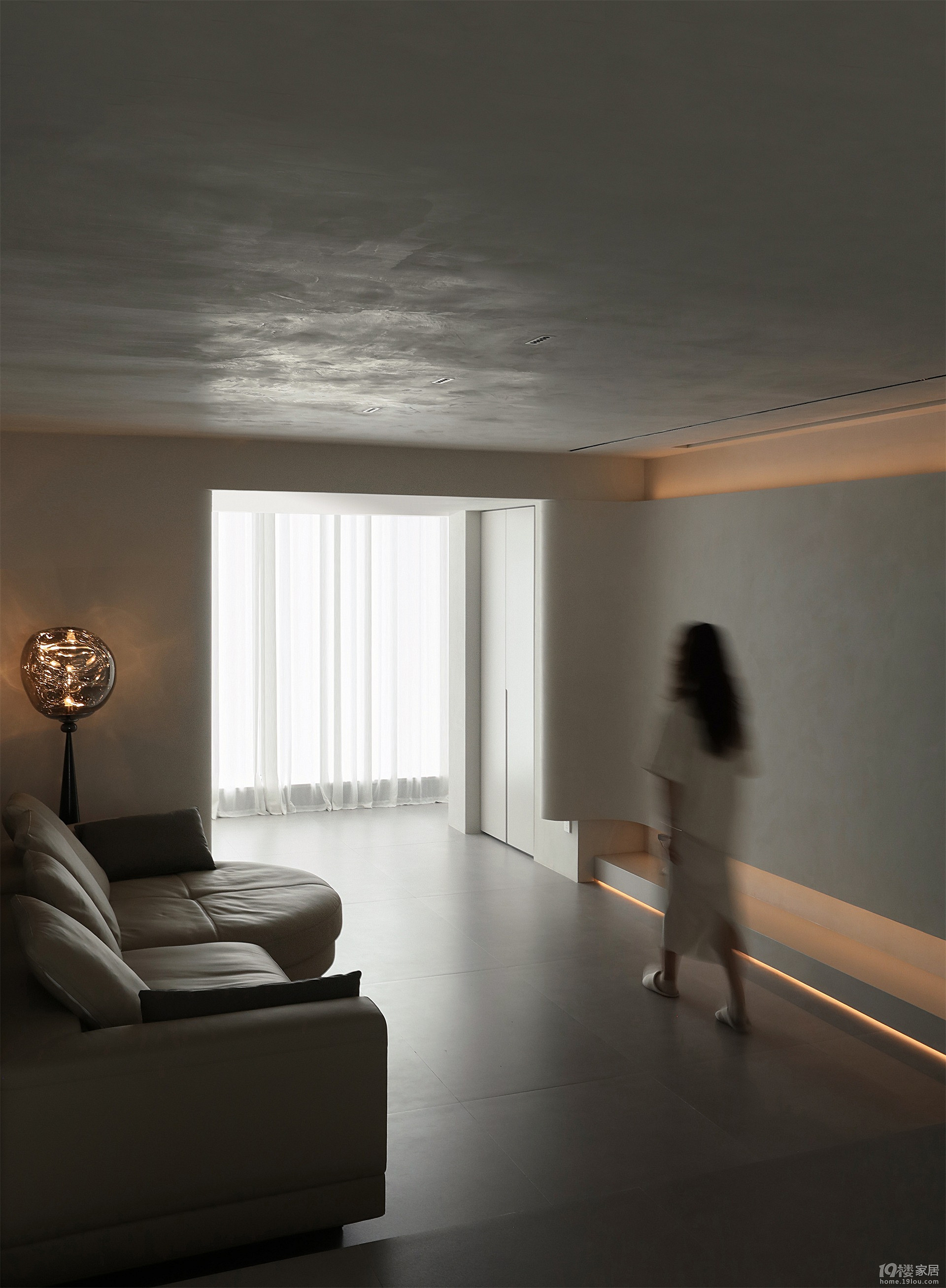 弧形沙发配合大落地窗,开放布局拯救奇葩户型
